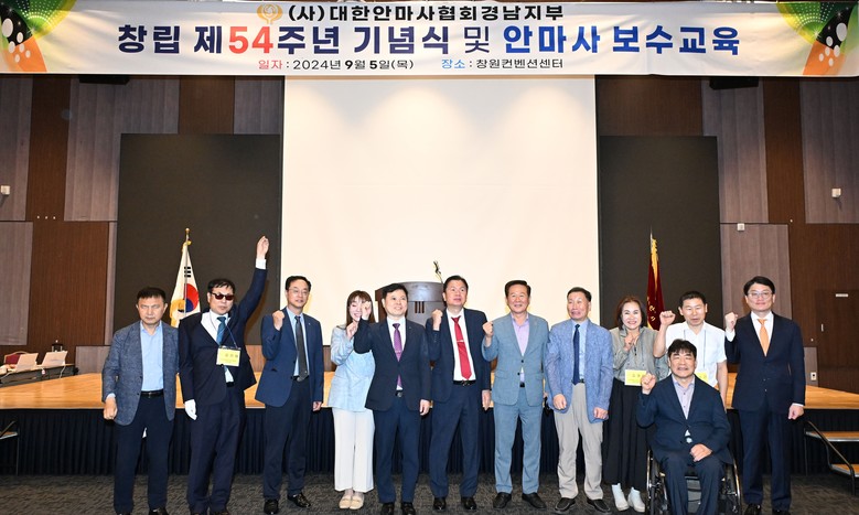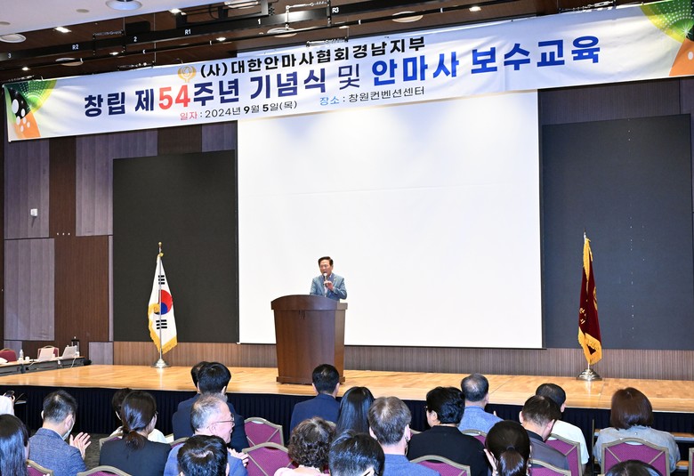 [경남 세계타임즈=최성룡 기자] 경상남도의회 박인 부의장이 지난 5일, (사)대한안마사협회 경남지부 제54주년 창립 기념식에 참석했다.