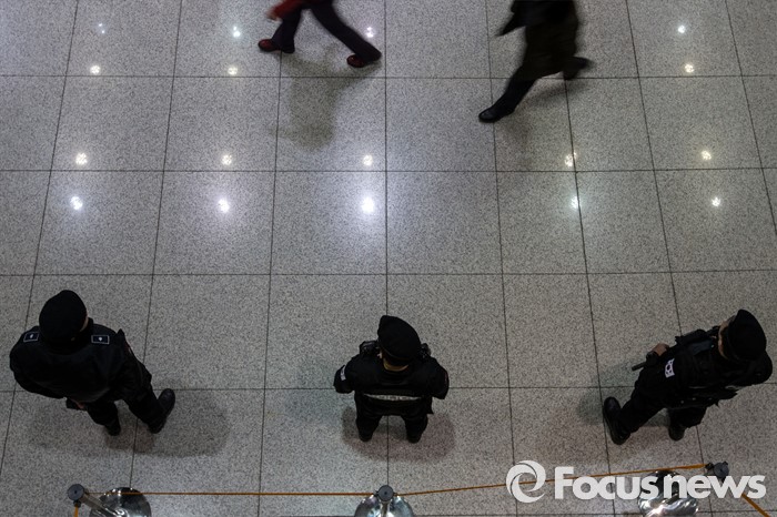 경찰은 해당 방송사 근처에 있던 일반 사람이 가방을 두고간 것으로 보고 있다.(인천공항=포커스뉴스) 인천국제공항에 폭발물 의심물체와 함께 아랍어로 된 협박성 메모가 발견된 사건 수사가 진행됐던 지난달 1일 오후 폭발물 의심물체가 발견된 인천공항 입국장 화장실에서 경찰병력이 경계근무를 서고 있다. 강진형 기자