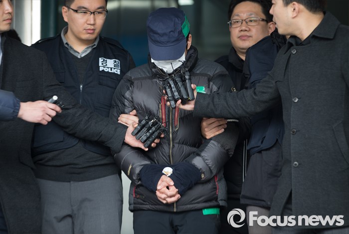 (평택=포커스뉴스) 학대와 무관심 속에 살해당한 뒤 야산에 암매장 된 신원영 군의 친부 신모 씨가 14일 오후 경기도 평택경찰서를 나서고 있다.
