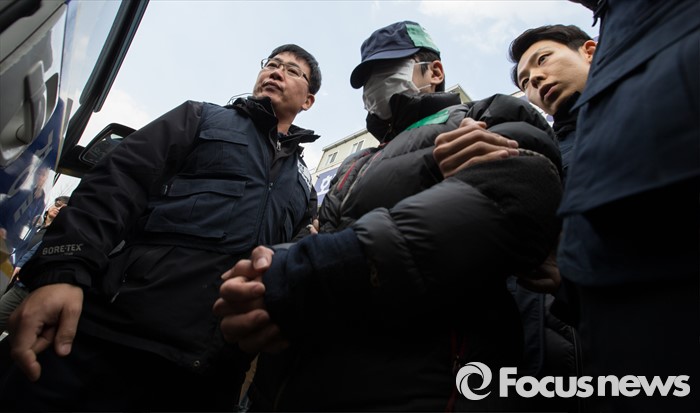 | △ 경찰서 나서는 친부 신모 씨 |