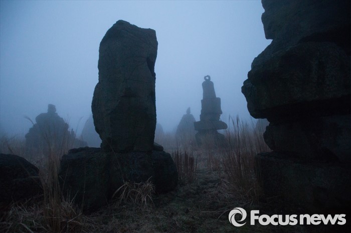 (제주=포커스뉴스) 안개 자욱한 18일 오후 제주시 남조로 돌문화공원에 마을의 무사안녕을 기원하는 방사탑들이 놓여져 있다.