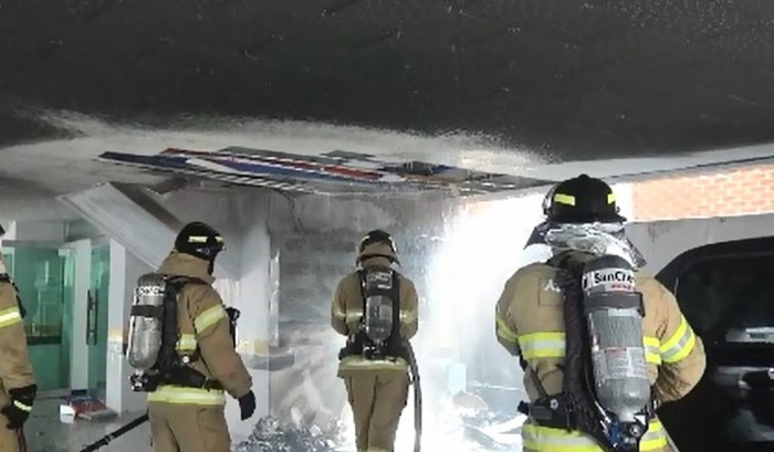 이 불로 인명피해는 없었지만 주차장 배전반, 주차 승용차 일부 등이 타는 등 모두 7100만원 상당의 재산피해가 발생했다.