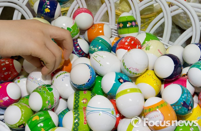 (대전=포커스뉴스) 부활절을 앞두고 23일 오전 대전 중구 가톨릭대학교 대전성모병원 원목팀 수녀들이 정성스럽게 꾸민 달걀을 바구니에 담고 있다. 이날 가톨릭대학교 대전성모병원 직원들은 생명의 탄생을 의미하는 부활 달걀 총 3000여개를 병동의 환자 및 보호자, 지역주민들에게 전달했다.