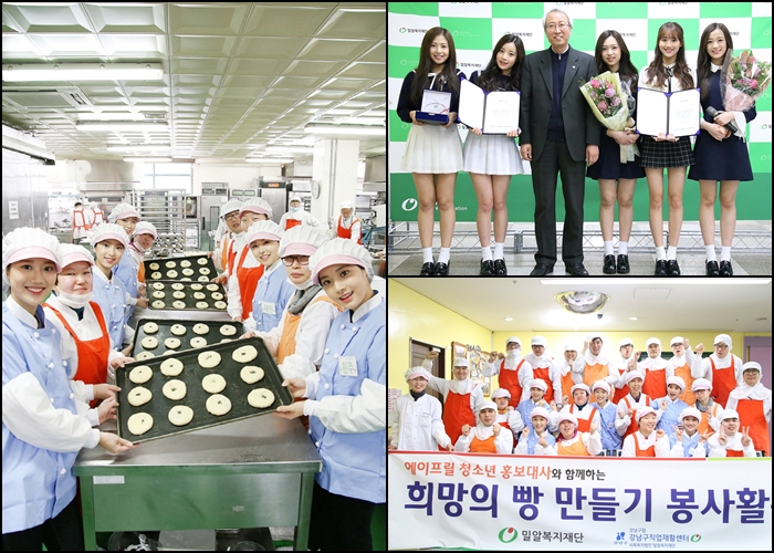 위촉식 당일 에이프릴은 강남구 직업재활센터 내 장애인직업재활시설인 밀알베이커리의 장애인 근로자들과 함께 단팥빵을 만들며 홍보대사로서 의미 있는 첫 발걸음을 뗐다. 이날 에이프릴과 장애인 근로자들이 함께 만든 빵 200개는 강남구직업재활센터를 이용하는 장애인들에게 기부됐다.