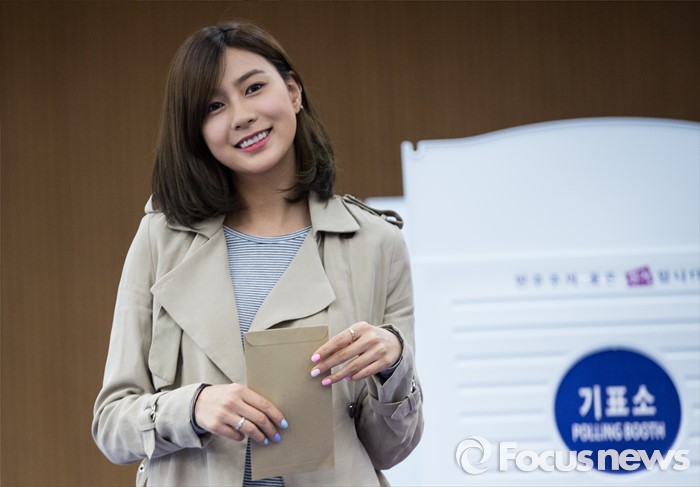 (서울=포커스뉴스) 에이핑크 오하영이 8일 오전 서울 마포구 서교동 주민센터에서 제 20대 총선 사전 투표를 하고 있다.