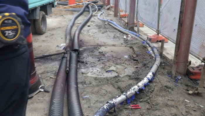경찰과 소방당국은 김씨 등이 전원차단기를 내리지 않고 고압선을 자르려다 사고가 난 것으로 보고 정확한 원인을 조사 중이다.서울 송파구 아파트 신축공사장에서 고압선이 터지는 사고가 났다. <사진제공=서울 송파소방서>