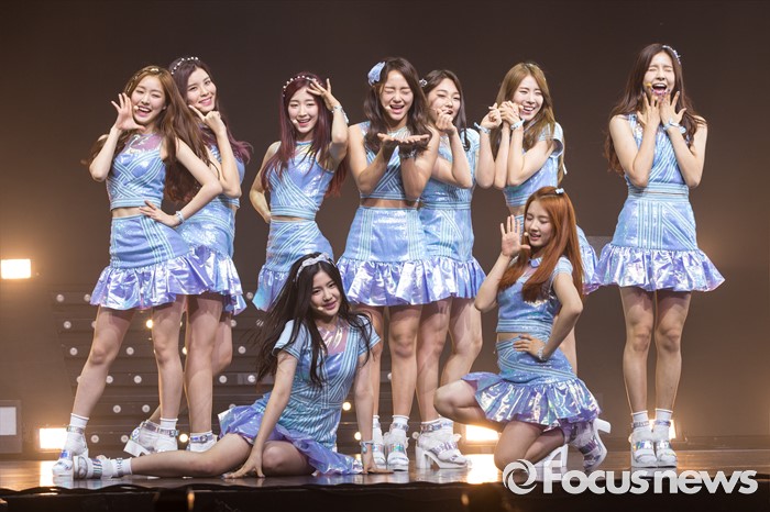 (서울=포커스뉴스) 28일 오후 서울 광진구 예스24 라이브홀에서 열린 걸그룹 구구단의 데뷔 쇼케이스에 참여한 멤버들이 신곡 'Wonderland' 무대를 선보이고 있다.