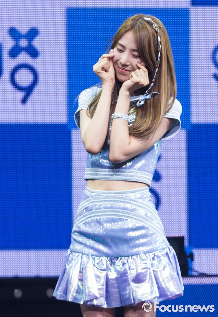 (서울=포커스뉴스) 28일 오후 서울 광진구 예스24 라이브홀에서 열린 걸그룹 구구단의 데뷔 쇼케이스에 참여한 멤버 해빈이 포토타임을 갖고 있다.