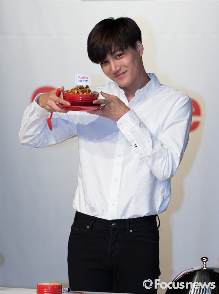 (서울=포커스뉴스) 29일 오후 서울 강남구 일지아트홀에서 열린 '굽네 볼케이노와 함께하는 엑소(EXO) 치밥 쿠킹 팬사인회'에서 카이가 포즈를 취하고 있다.