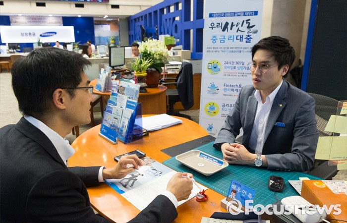 (서울=포커스뉴스) 5일 오후 서울 중구 우리은행 본점에서 은행 고객이 사잇돌 중금리 대출 상담을 받고 있다.