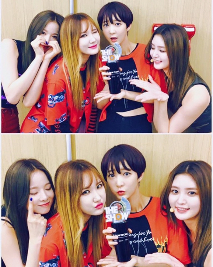 한편 EXID는 당분간 해외 활동과 개별 활동에 전념하며 하반기 컴백을 준비할 계획이다.걸그룹 EXID는 지난 5일 방송된 SBS MTV '더쇼'에서 1위에 오르며 '엘라이' 공식 활동을 마무리했다. 사진은 '더쇼' 1위 인증사진. <사진제공=바나나컬쳐>