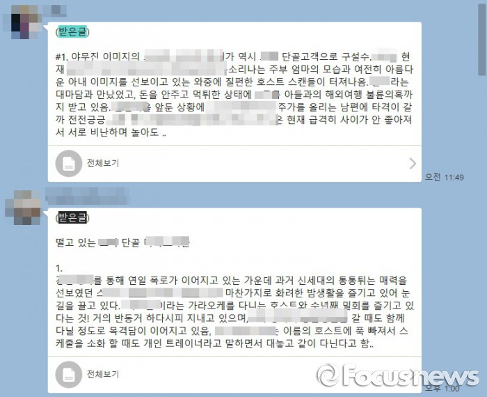 (서울=포커스뉴스) "'받은 글- 조각 같은 외모로 유명한 남자 배우 A가 강남 모 유흥주점에 제 집 드나들 듯 한다는 소문입니다."