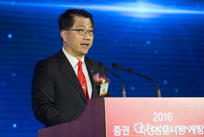 진 금감원장은 "'1사 1교 금융교육' 활성화를 위해 초·중·고 학생을 대상으로 금융특강을 지속적으로 실시하겠다"고 말했다.병신년(丙申年) 새해 첫 증시 개장일인 4일 오전 영등포구 서울 여의도 거래소 2016년도 증권·파생상품시장 60주년 개장식에서 진웅섭 금융감독원장이 축사를 하고 있다. 2016.01.04 김흥구 기자