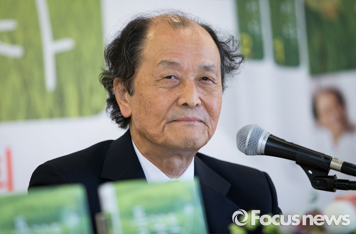 (서울=포커스뉴스) 조정래 소설가가 12일 오전 서울 중구 한국프레스센터에서 '풀꽃도 꽃이다' 출간기념 기자간담회에서 한국 교육시스템의 문제점을 말하고 있다.