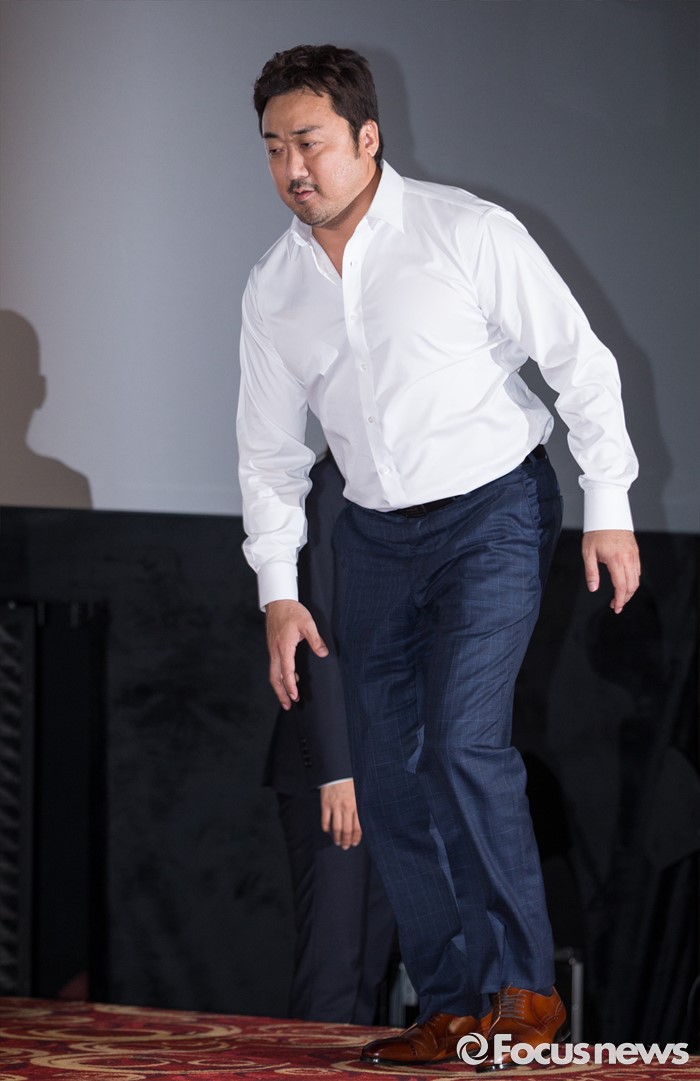 (서울=포커스뉴스) 12일 오후 서울 광진구 롯데시네마 건대입구점에서 열린 영화 '부산행' 언론시사회에 참석한 배우 마동석이 포토타임을 위해 이동하고 있다.