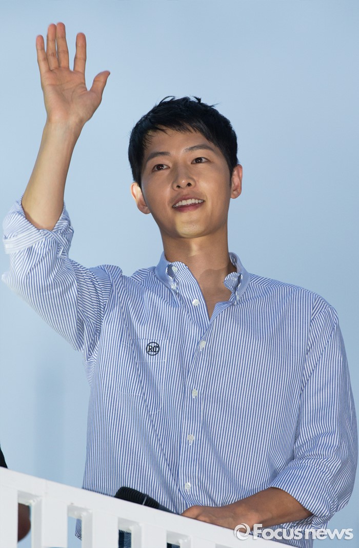(서울=포커스뉴스) 14일 오후 서울 서대문구 신촌 일대에서 열린 '제2회 신촌맥주축제'에 참석한 배우 송중기가 손을 흔들며 인사하고 있다.