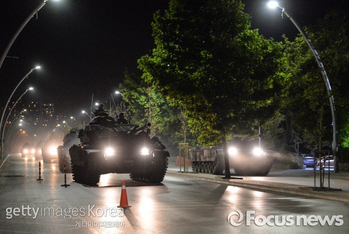 한편 NTV는 "수도 앙카라에서는 저공비행하는 전투기와 폭발음 소리가 도시 곳곳에서 들렸다"고 보도했다. 또 "군 헬리콥터가 앙카라 상공을 날며 앙카라 경찰청을 공격했고, 의회 주변에는 탱크들이 대치 중이다"라고 보도했다.(터키/앙카라=게티/포커스뉴스) 터키에서 7월 15일(현지시간) 쿠데타가 발생했다.2016.07.16 ⓒ게티이미지/이매진스