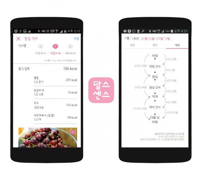 특히 맘스센스 앱은 이렇게 기록한 식사정보를 정상혈당 시 먹었던 음식들과 고혈당 시 먹었던 음식들로 구분해 보여줌으로써 여름철 매끼 메뉴선택에 고민하는 임신부들의 어려움을 덜어줄 것으로 기대된다.