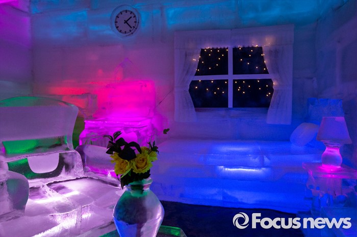 (서울=포커스뉴스) 3일 오후 서울 마포구 아이스뮤지엄에 얼음 구조물들이 전시돼 있다.