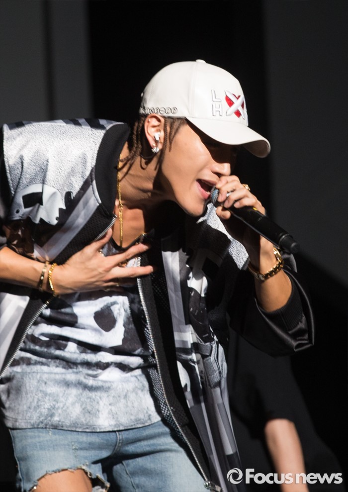 (서울=포커스뉴스) 8일 오후 서울 광진구 예스24 라이브홀에서 가수 준케이가 첫 솔로 미니앨범 쇼케이스를 열고 무대를 선보이고 있다.