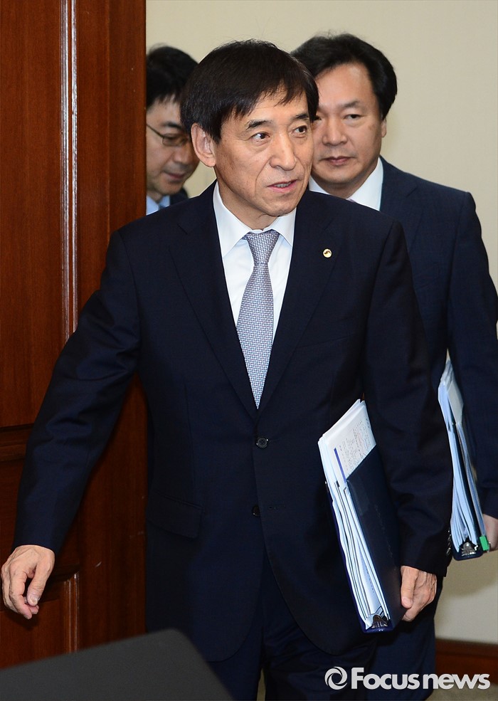 (서울=포커스뉴스) 이주열 한국은행 총재가 11일 오전 서울 중구 한국은행에서 열린 제15차 금융통화위원회에 참석하고 있다.
