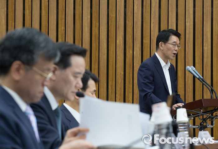 (서울=포커스뉴스) 11일 오전 서울 여의도 국회에서 열린 민생경제 특별위원회 전체회의에 참석한 강호인(오른쪽) 국토교통부 장관이 업무보고를 하고 있다.